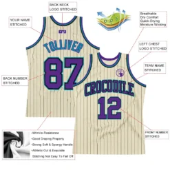 Custom Cream Black Pinstripe Purple-Teal Authentic Basketball Jersey