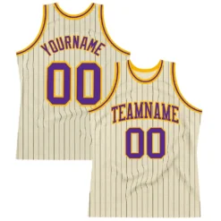 Custom Cream Black Pinstripe Purple-Gold Authentic Basketball Jersey