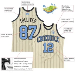 Custom Cream Black Pinstripe Blue Authentic Basketball Jersey