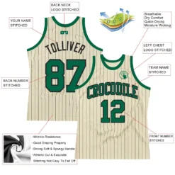 Custom Cream Black Pinstripe Kelly Green Authentic Basketball Jersey