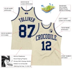 Custom Cream Gray Pinstripe Navy Authentic Basketball Jersey