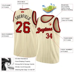 Custom Cream Black Pinstripe Maroon Authentic Basketball Jersey