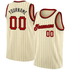 Custom Cream Black Pinstripe Red-Black Authentic Basketball Jersey