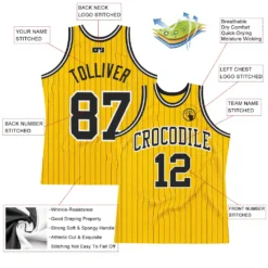 Custom Gold Black Pinstripe Black-White Authentic Basketball Jersey