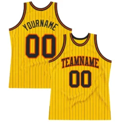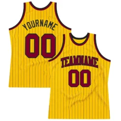 Custom Gold Black Pinstripe Maroon Authentic Basketball Jersey
