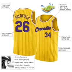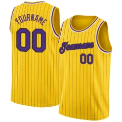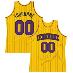 Custom Gold Black Pinstripe Purple Authentic Basketball Jersey