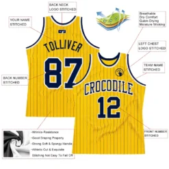 Custom Gold Navy Pinstripe Navy-White Authentic Basketball Jersey