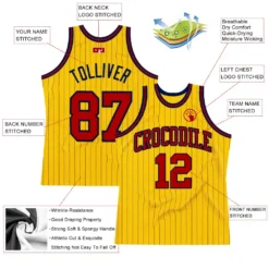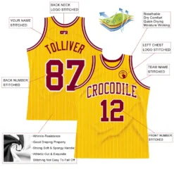 Custom Gold White Pinstripe Maroon Authentic Basketball Jersey