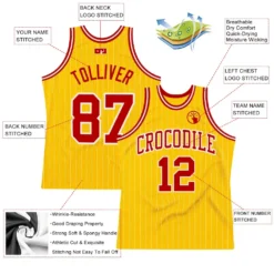 Custom Gold White Pinstripe Red Authentic Basketball Jersey