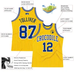 Custom Gold White Pinstripe Royal Authentic Basketball Jersey