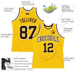 Custom Gold White Pinstripe Brown Authentic Basketball Jersey