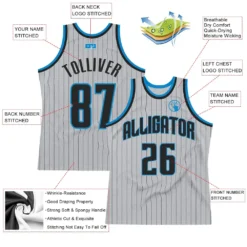 Custom Gray Black Pinstripe Black-Blue Authentic Basketball Jersey