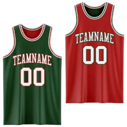 Custom Reversible Green White-Red Double Side Basketball Jersey