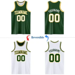 Custom Reversible Green White-Gold Double Side Basketball Jersey