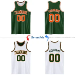 Custom Reversible Green Orange-White Double Side Basketball Jersey