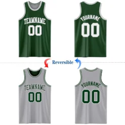 Custom Reversible Green White-Gray Double Side Basketball Jersey