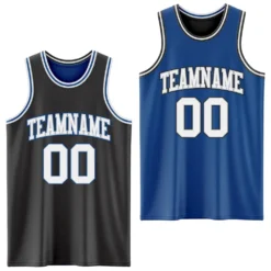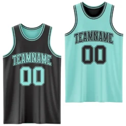 Custom Reversible Black Ice Blue Double Side Basketball Jersey