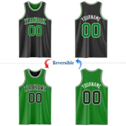Custom Reversible Black Green-White Double Side Basketball Jersey