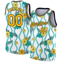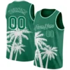 Custom Aqua Pink Light Blue-Black 3D Pattern Tropical Beach Hawaii Palm Trees Authentic Basketball Jersey