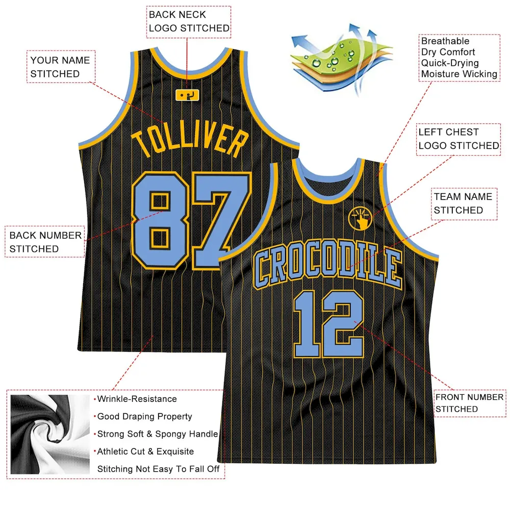Custom Black Gold Pinstripe Light Blue-Gold Authentic Basketball Jersey
