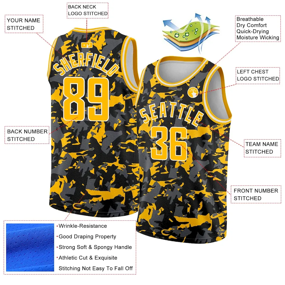 Custom Black Gold-White 3D Pattern Design Abstract Grunge Art Authentic Basketball Jersey