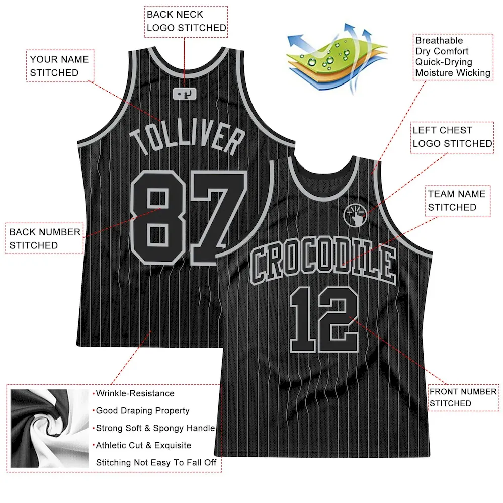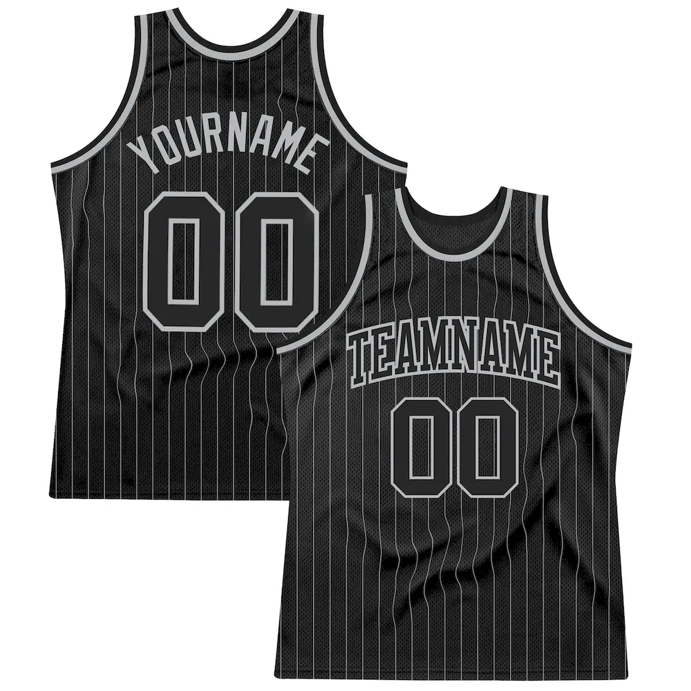 Custom Black Gray Pinstripe Black-Gray Authentic Basketball Jersey