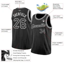 Custom Black Old Gold Pinstripe Black-Old Gold Authentic Basketball Jersey