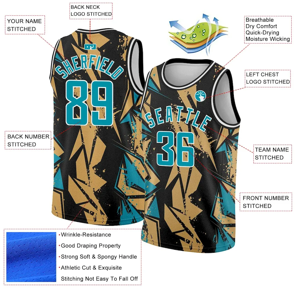 Custom Black Panther Blue-Old Gold 3D Pattern Design Geometric Shapes Authentic Basketball Jersey