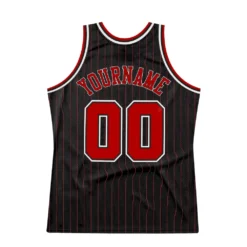 Custom Black Red Pinstripe Red-White Authentic Basketball Jersey