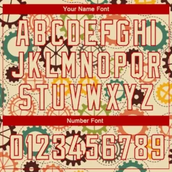 Custom Cream Red 3D Pattern Design Vintage Gears Authentic Basketball Jersey