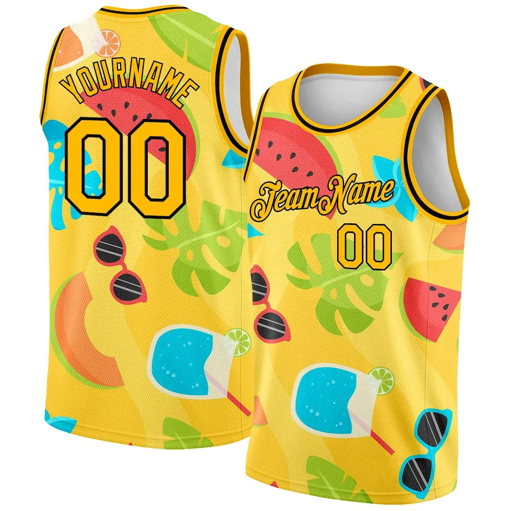 Custom Gold Black 3D Pattern Summer Hawaii Beach Holiday Authentic Basketball Jersey