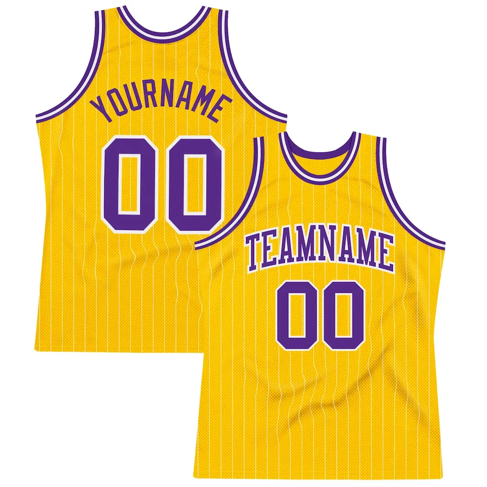 Custom Gold White Pinstripe Purple Authentic Basketball Jersey