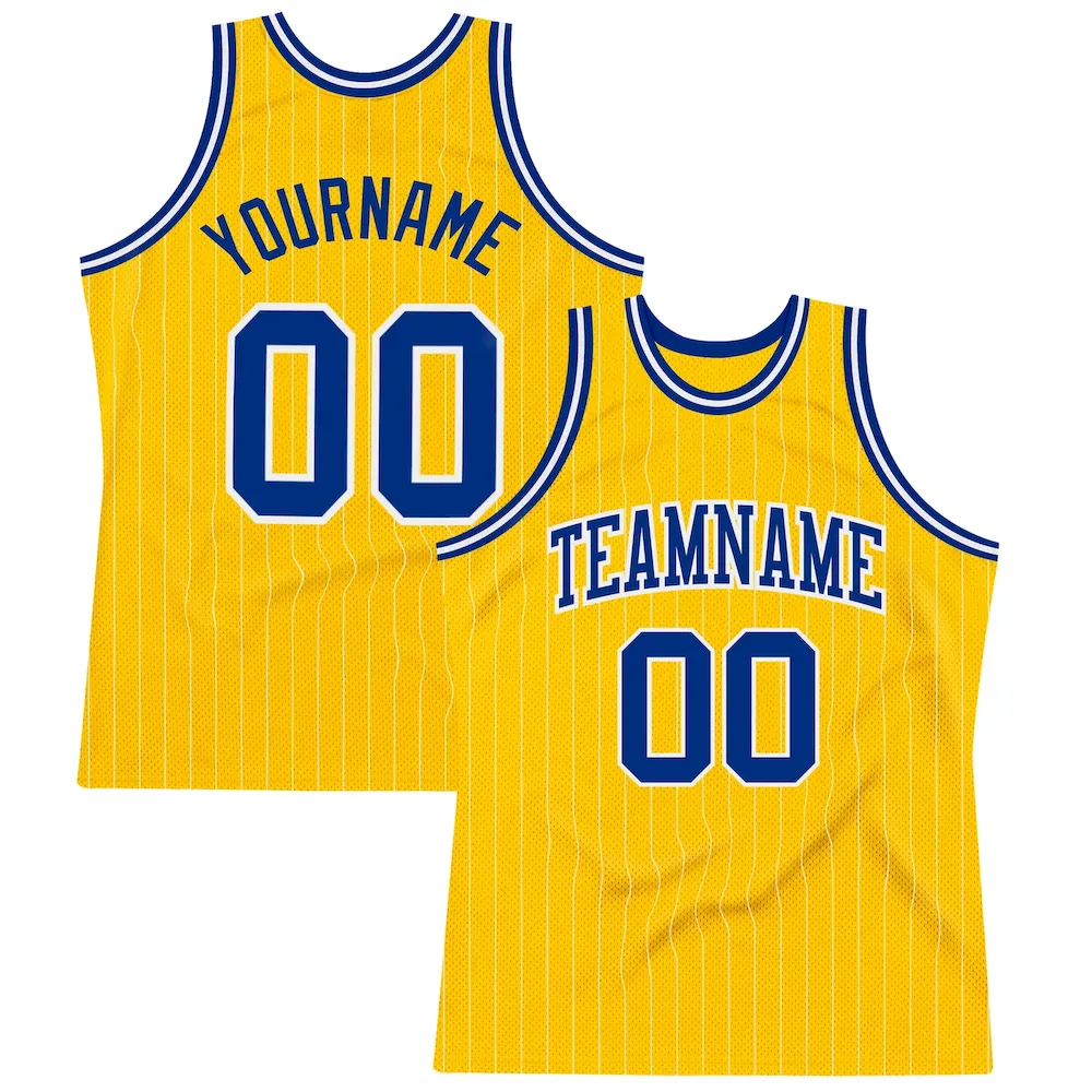 Custom Gold White Pinstripe Royal Authentic Basketball Jersey