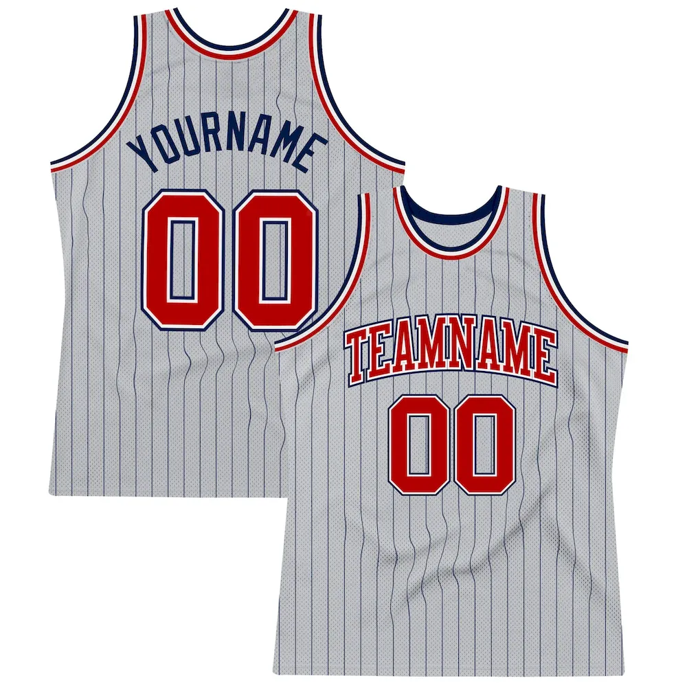 Custom Gray Navy Pinstripe Red-White Authentic Basketball Jersey
