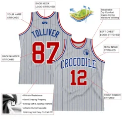 Custom Gray Royal Pinstripe Red-White Authentic Basketball Jersey
