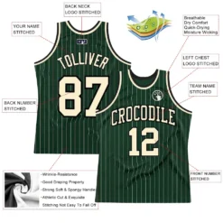 Custom Hunter Green White Pinstripe Cream-Black Authentic Basketball Jersey