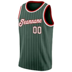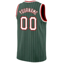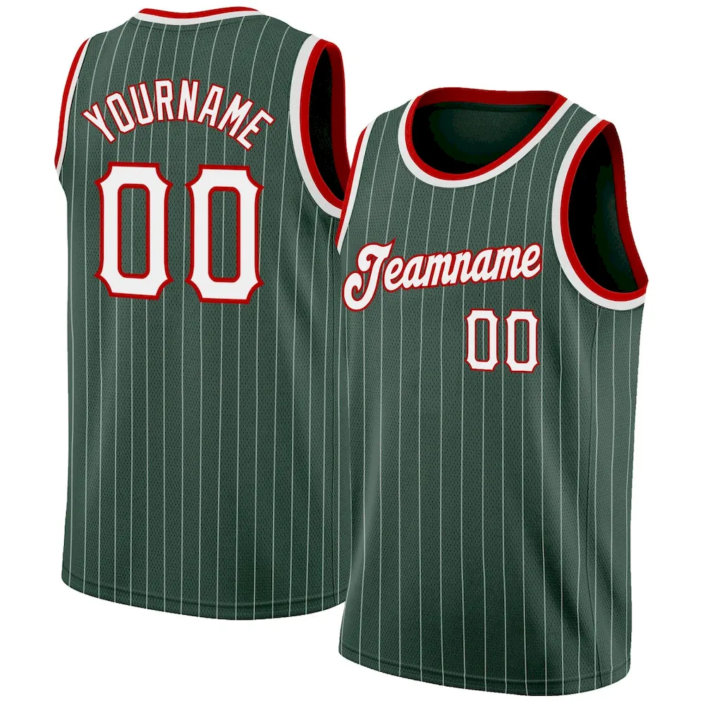 Custom Hunter Green White Pinstripe White-Red Authentic Basketball Jersey