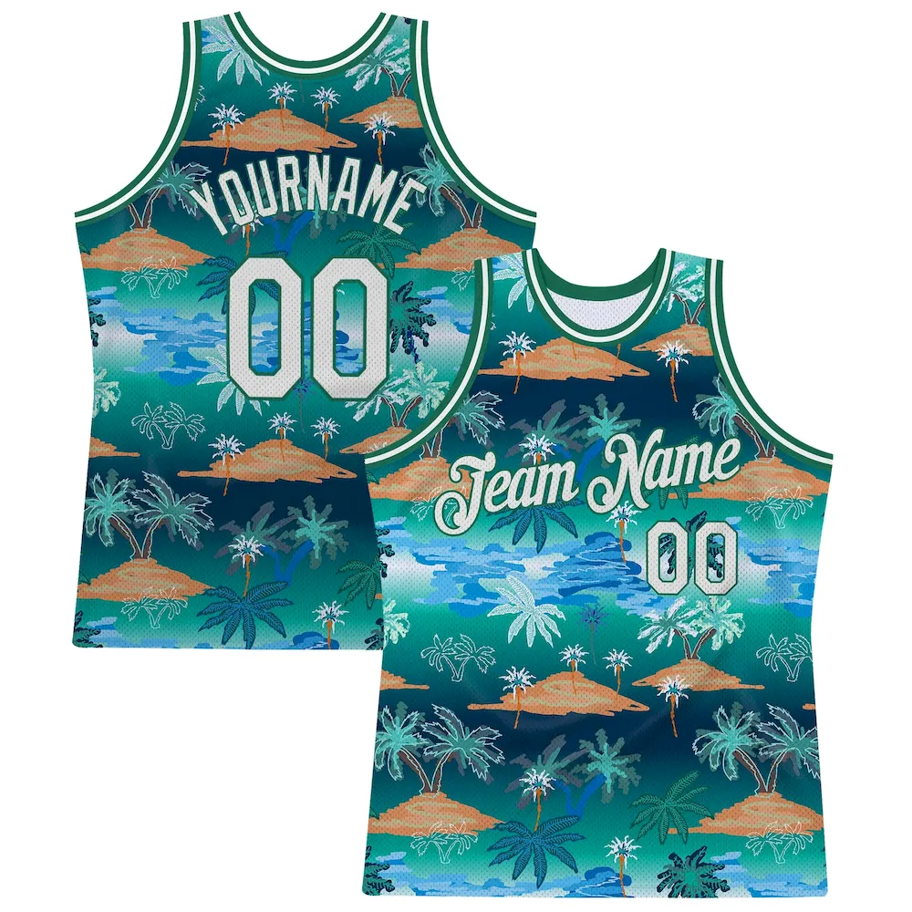 Custom Kelly Green White-Kelly Green 3D Pattern Hawaii Palm Trees Authentic Basketball Jersey