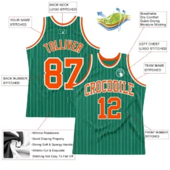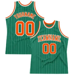 Custom Kelly Green White Pinstripe Orange Authentic Basketball Jersey