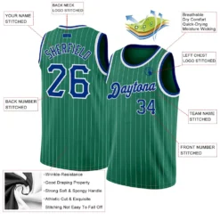 Custom Kelly Green White Pinstripe Royal-White Authentic Basketball Jersey