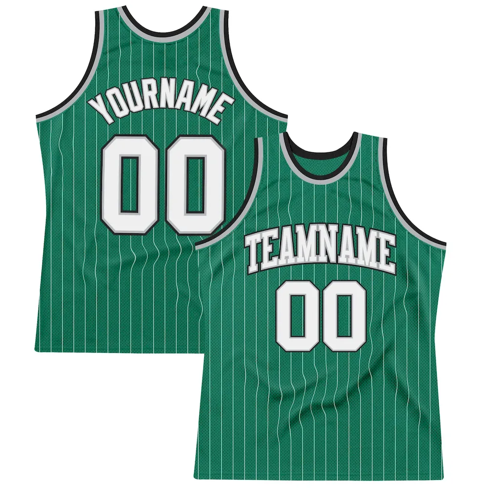 Custom Kelly Green White Pinstripe White Gray-Black Authentic Basketball Jersey