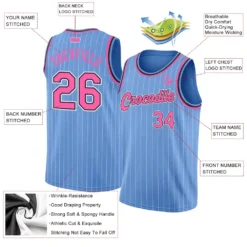 Custom Light Blue White Pinstripe Pink-Black Authentic Basketball Jersey