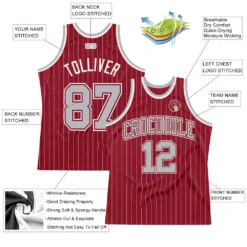 Custom Maroon White Pinstripe Gray Authentic Basketball Jersey