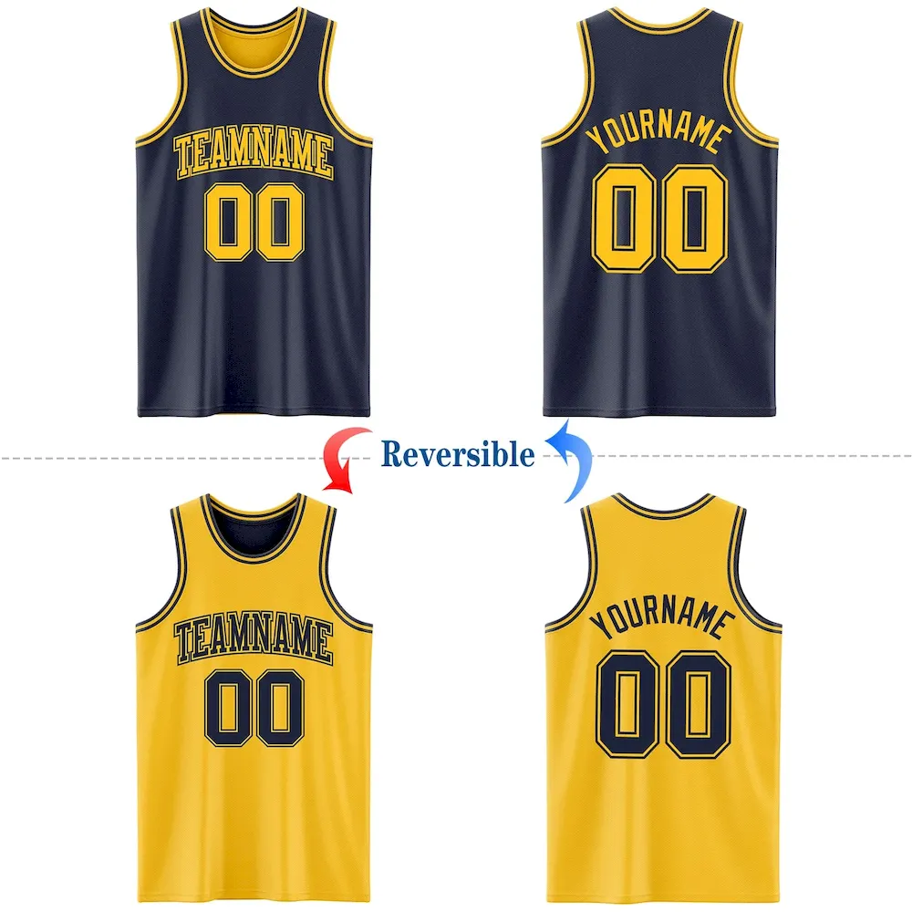 Custom Navy Gold Reversible Double Side Basketball Jersey