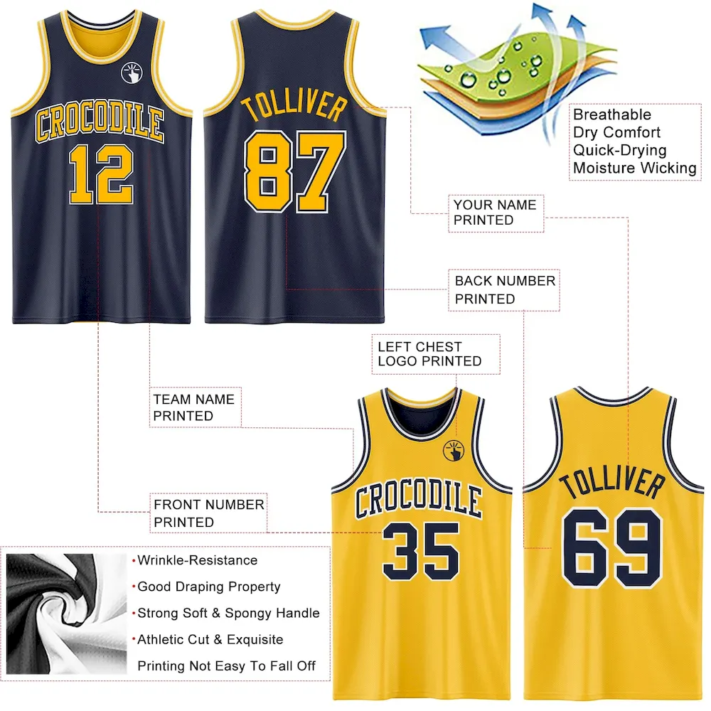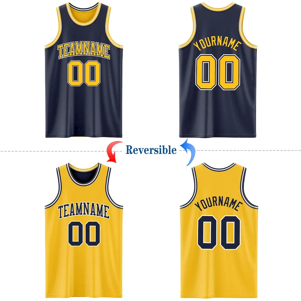 Custom Navy Gold-White Reversible Double Side Basketball Jersey