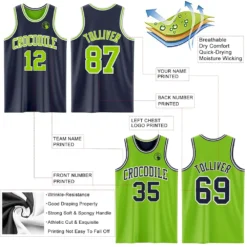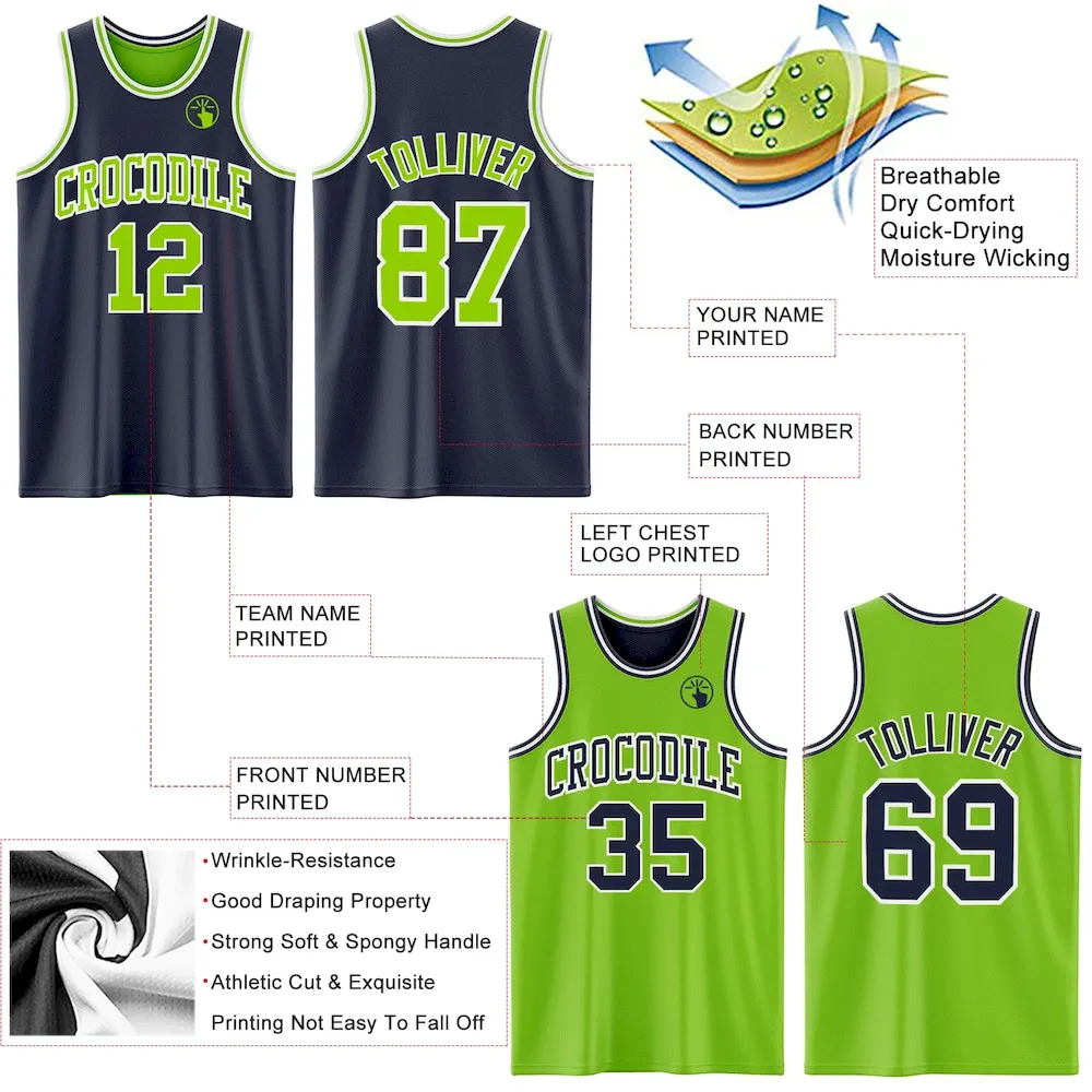 Custom Navy Neon Green-White Reversible Double Side Basketball Jersey