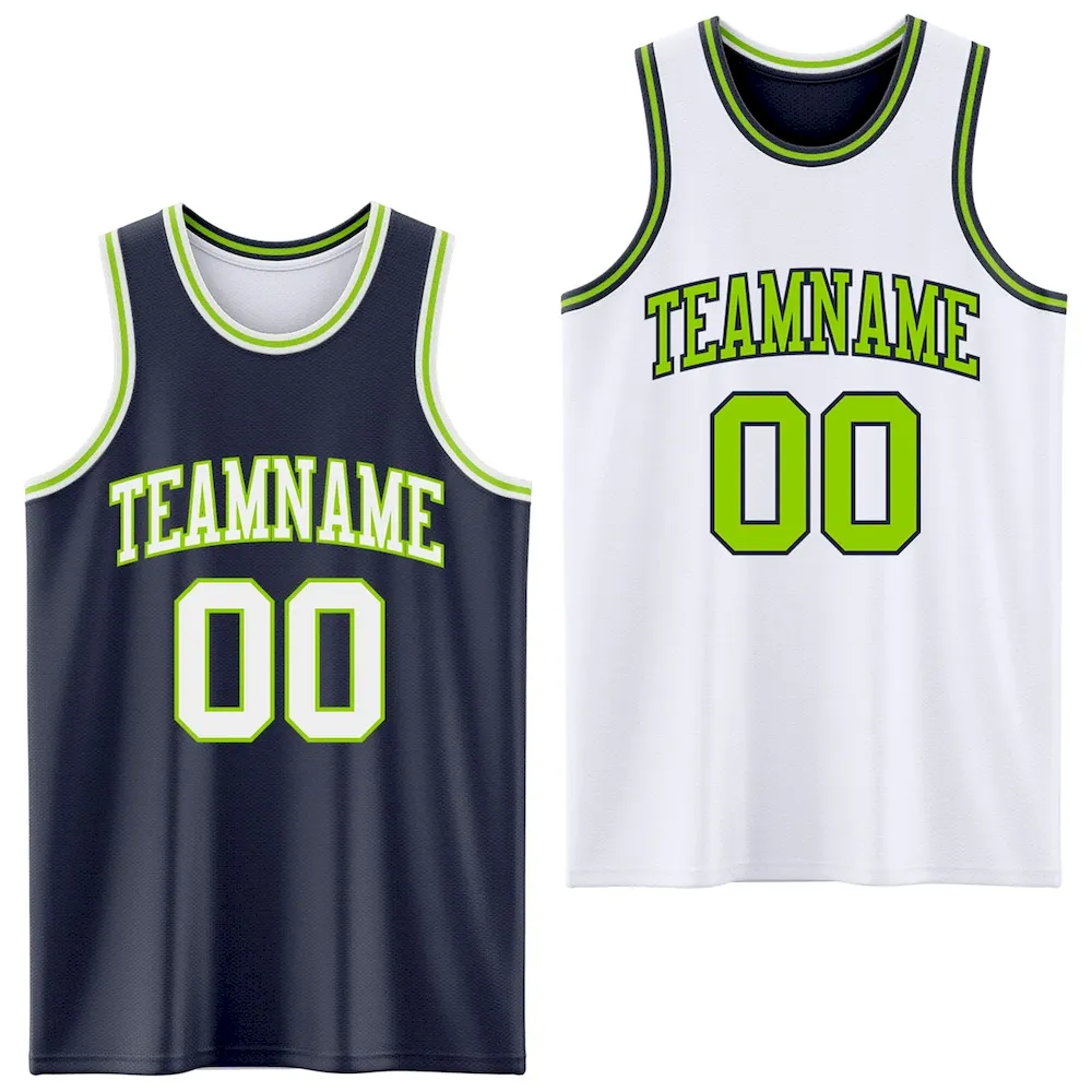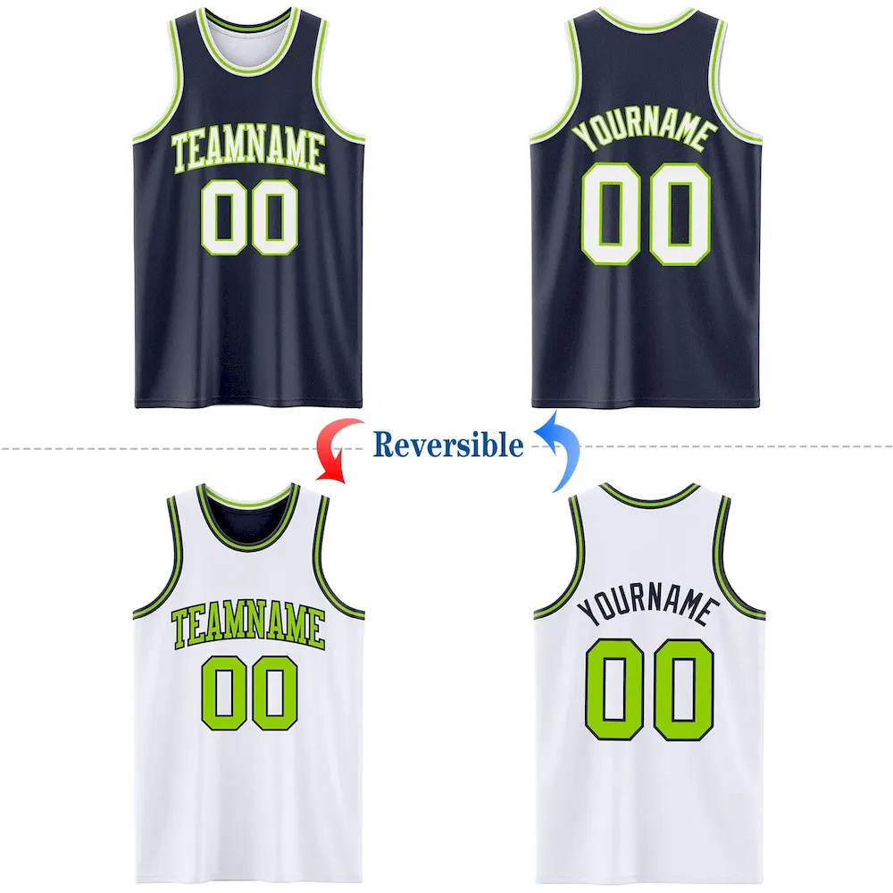 Custom Navy White-Neon Green Reversible Double Side Basketball Jersey