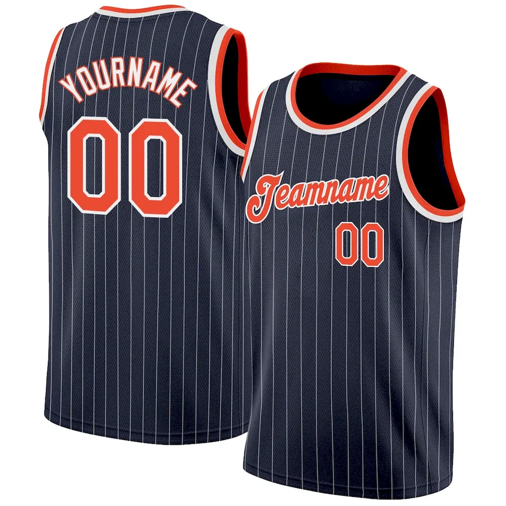 Custom Navy White Pinstripe Orange-White Authentic Basketball Jersey
