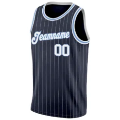 Custom Navy White Pinstripe White-Light Blue Authentic Basketball Jersey