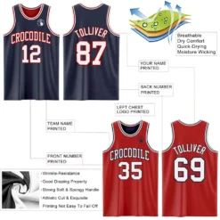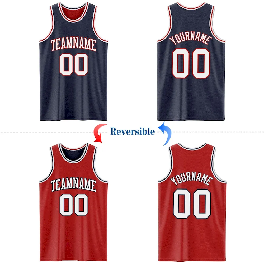 Custom Navy White-Red Reversible Double Side Basketball Jersey